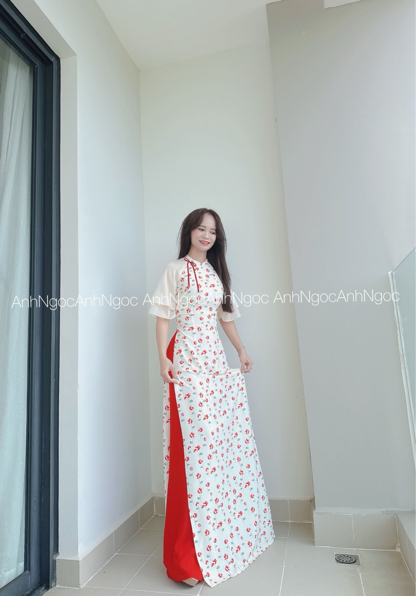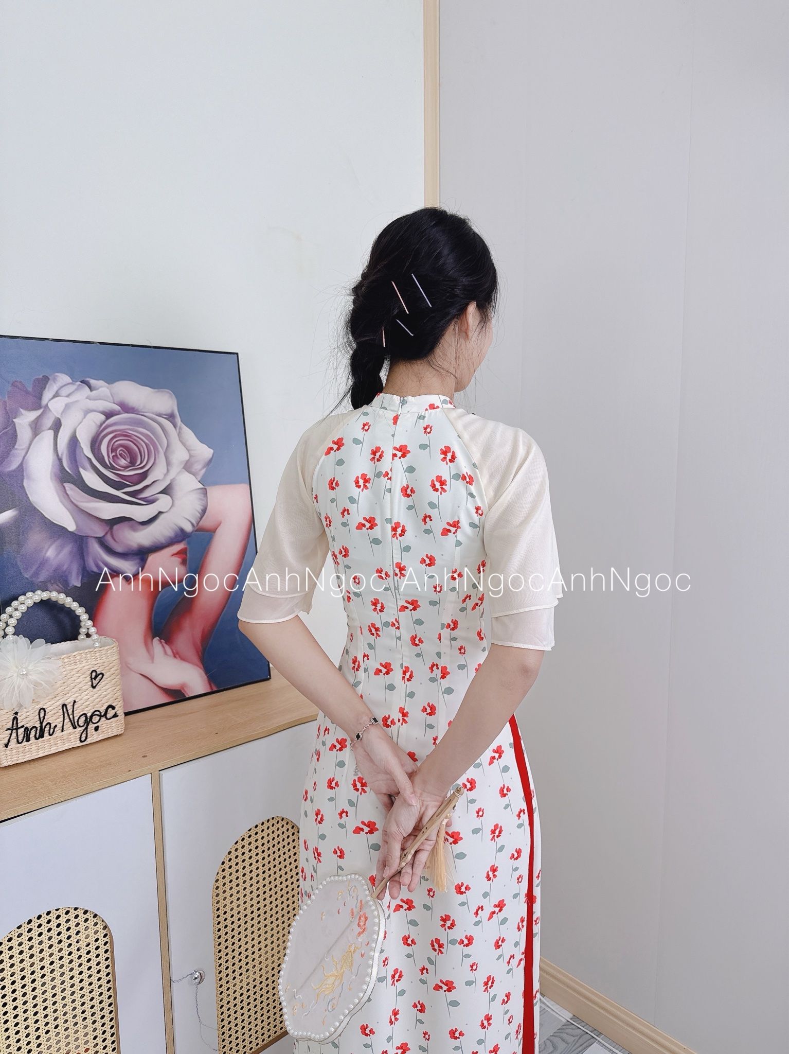 Áo dài Nhí Kem Vani Tay Loe 2 Lớp, Đính Nơ xinh xắn